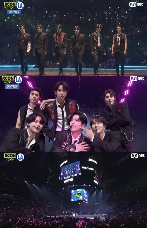ENHYPENは8月20日(現地時間)、3年ぶりに有観客で開催された「KCON 2022 LA」に出演した。彼らは『Future Perfect (Pass the MIC)』『FEVER』で強烈かつエナジェティックな魅力を見せた。そして続く『Polaroid Love』でメンバーたちは、ファンと直接目を合わせながら挨拶を交わすなど、格別なファン愛を表現した。