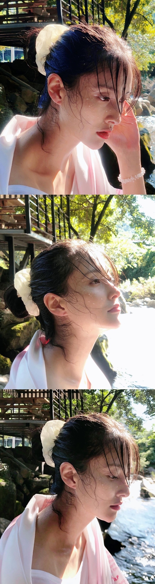 公開された写真にはパク・ギュリが渓谷で水遊びを楽しんでいる姿が写されている。特に、パク・ギュリは水気のある顔で日差しを浴び、きらめく姿で感嘆を誘った。清楚さと妖艶な雰囲気が合わさった雰囲気が目を引く。
