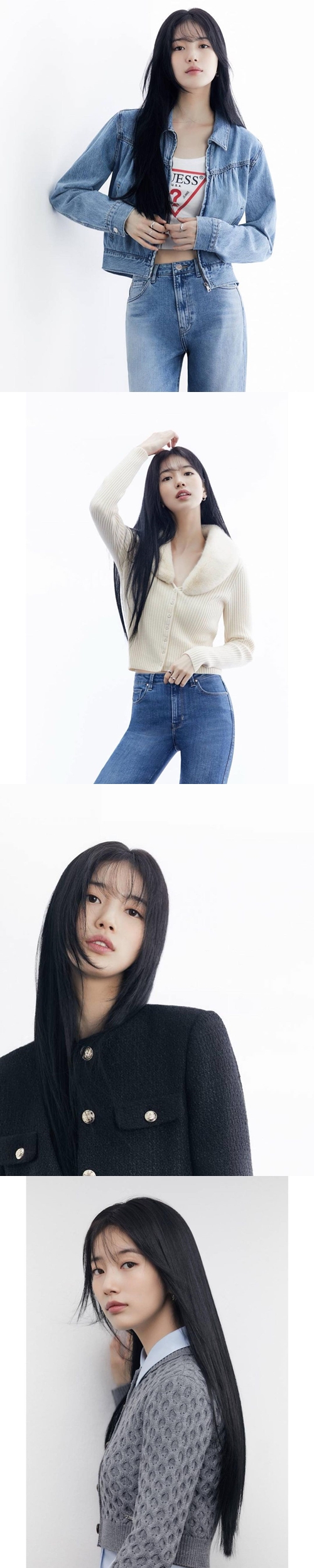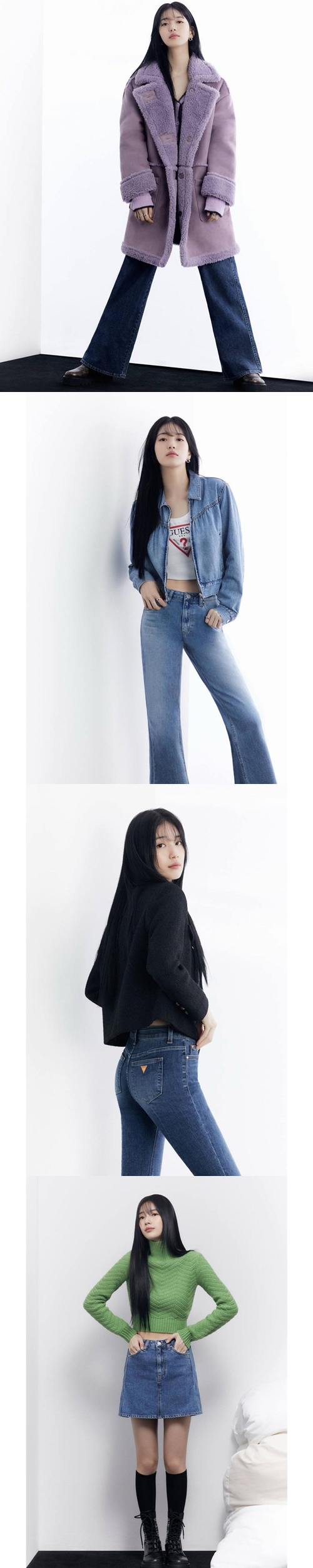 写真の中でペ・スジはデニムジャケットとズボン、デニムスカートなど多様な「GUESS」アイテムを消化した。