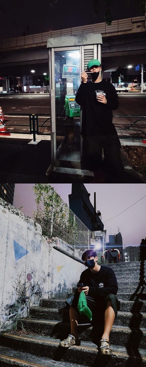 公開された写真には、日本に滞在中の姿が収められている。マスクを着けてラフな服装で公衆電話の前や階段でポーズをとったり、渋谷の街を歩く後ろ姿もあった。