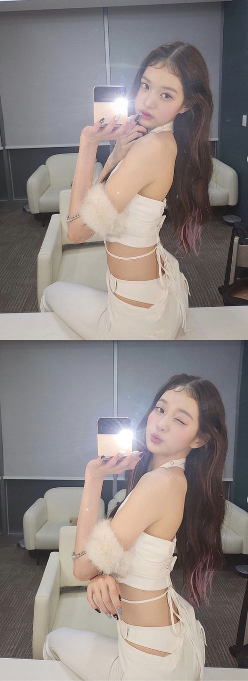 公開された写真は、いずれも鏡を使って彼女自身を自撮りしたもの。肩やウエストが見える白い衣装を身に着けたウォニョンは、振り返りながら写真を撮っている。17歳とは思えない美貌はもちろん、その美しい肩やくびれたウエストは視線を強奪した。