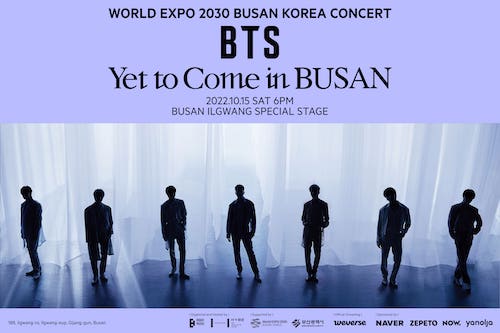 「2030釜山世界万博」誘致念願コンサート『BTS <Yet To Come> in BUSAN』の場所が変更されましたので、ご案内いたします。