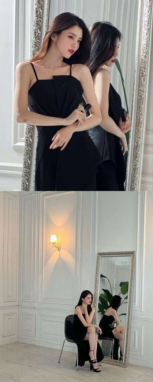 黒ドレスからはスラリとした美脚がのぞいており、赤リップが主役のメイクを施されたハン・ソヒは、どこか色っぽい雰囲気をまとっている。