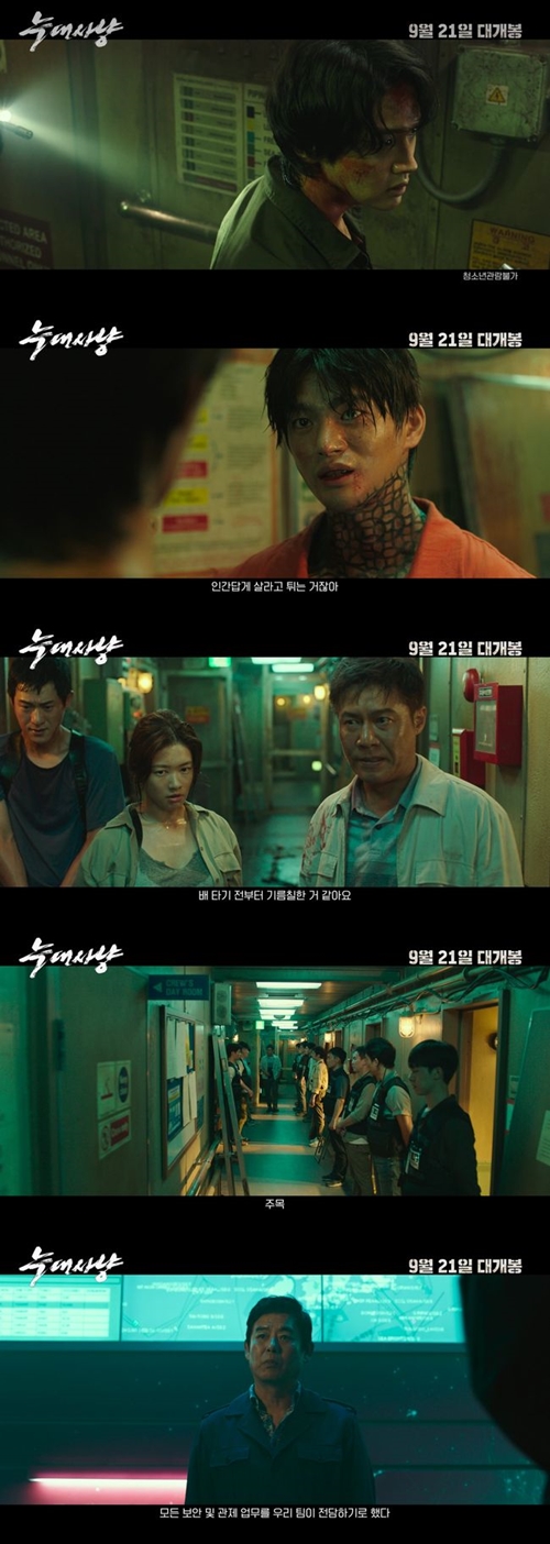 続いて一級犯罪者のジョンドゥ(演者ソ・イングク)をはじめとする犯罪者が解放され、フロンティア・タイタン号内部を自由に歩き回る姿は、船内で繰り広げられる犯罪者の反乱とともに本格的に繰り広げられる極限のサバイバルを予告する。