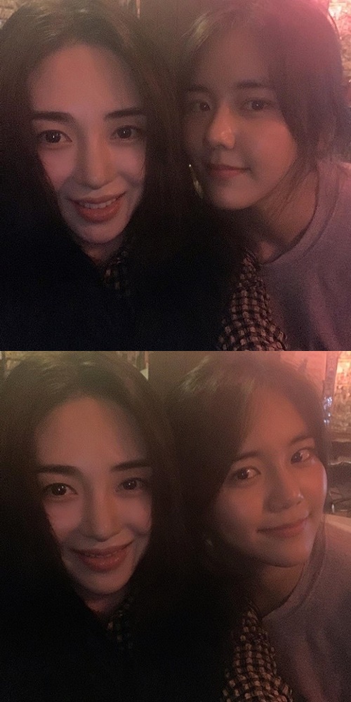 公開された写真には、クォン・ミナとヘジョンが仲良さげに顔を近づけ、微笑んだ姿が収められている。若干、薄暗い場所で撮られた写真ではなるが、さすが現・元人気アイドルで、美貌が目立つ。