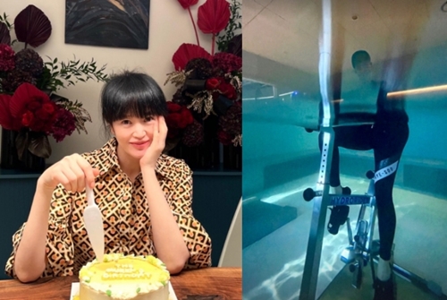 キム・ヘスは水中でフィットネスバイクに乗りながら集中しているようだ。50代になっても見事な体つきを維持しているキム・ヘスは、トレーニングウェア姿ですらりとした姿を見せた。余暇にも休まず運動に熱中し、徹底した自己管理を続けている。