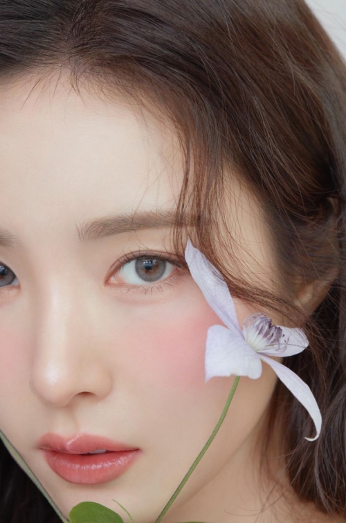 写真には、一輪の花を持ったシン・セギョンがドアップで収められている。