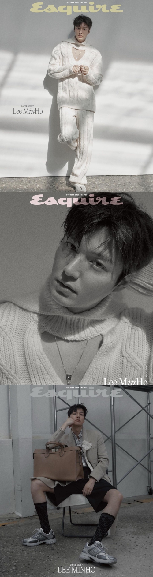 イ・ミンホはニットのセットアップ姿で温もりのあるビジュアルを誇った。