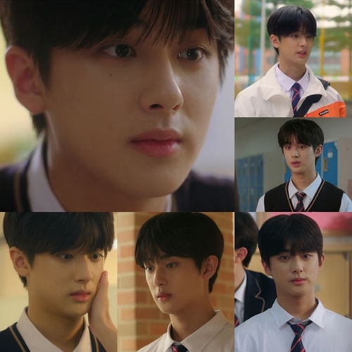 キム・ミンギュは愛らしい笑顔とビジュアルはもちろん、自然な表情と台青春そして完璧な制服スタイルで「ソヨン高校」の“顔天才”イ・ジェミンというキャラクターをさらに魅力的にした。