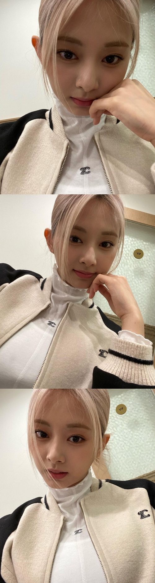 ローアングルから仰角気味に撮られた“ドアップ自撮り”で、ツウィは崩れることない相変わらずの美貌を誇っている。