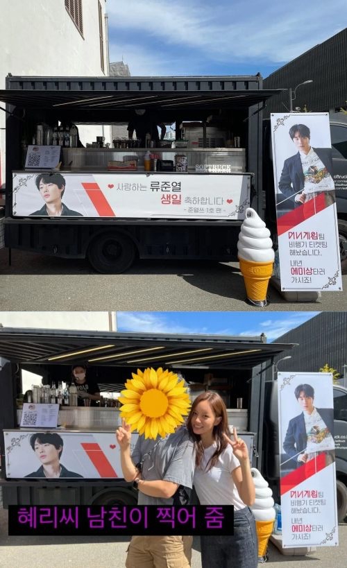 ヘリは最近、リュ・ジュンヨルが出演するOTT(動画配信サービス)シリーズ『マネーゲーム』撮影現場にコーヒーカーを差し入れた際、直接現場を訪問した。