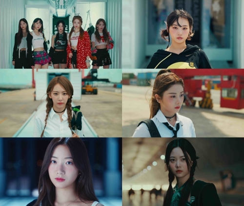 続いて、「ANTIFRAGILE」と書かれたコンテナトラックに乗ったあと、暗い都心を抜け出して開けた港に到着。瞬く間に雰囲気は反転し、ブランドのファッションショーを連想させるランウェイが繰り広げられる。メンバーたちはファンキーな衣装で登場し、自信のある表情とウォーキングで新アルバムへの期待を高めた。