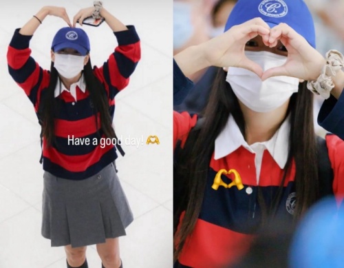 写真には、空港でファンに向けてポーズを取るハン・ヒョジュの姿が写っている。タイの空港では多くの熱烈なファンに歓迎を受け、ハン・ヒョジュは指ハートでその愛に応えた。