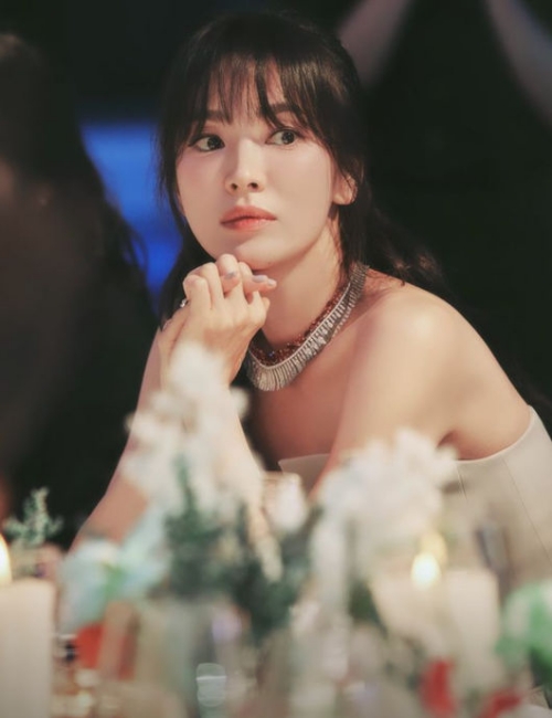 写真をのぞくと、パーティー会場でどこかを見つめるソン・ヘギョが写っている。