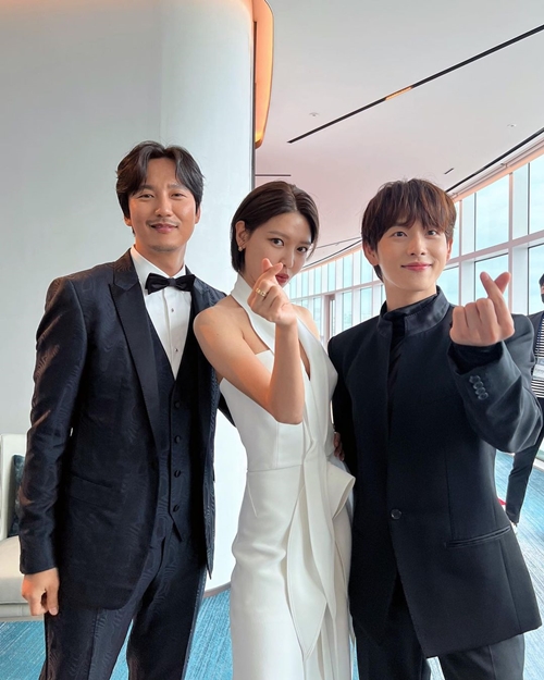 久しぶりに再会した俳優たちとの写真も公開したスヨン。キム・ナムギルやイム・シワンと共に指ハートをつくり、仲の良さを見せつけた。