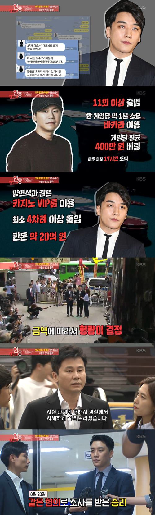 8月30日に放送されたKBSの芸能情報番組『演芸街中継』では遠征賭博容疑を受けているV.IとYGエンターテインメントのヤン・ヒョンソク前代表が特集された。