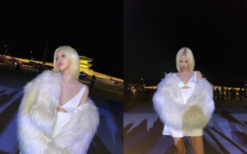 公開された写真のソヨンは、ソウル光化門広場前で開かれたブランド行事に参加し、ポーズを取っている。