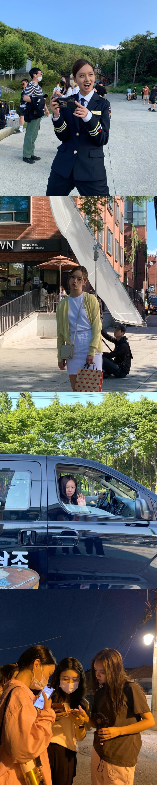 他にも制服姿で笑顔を見せたり、スタッフと話し合ったりするヘリの姿が。チャーミングな魅力で見る者を魅了した。