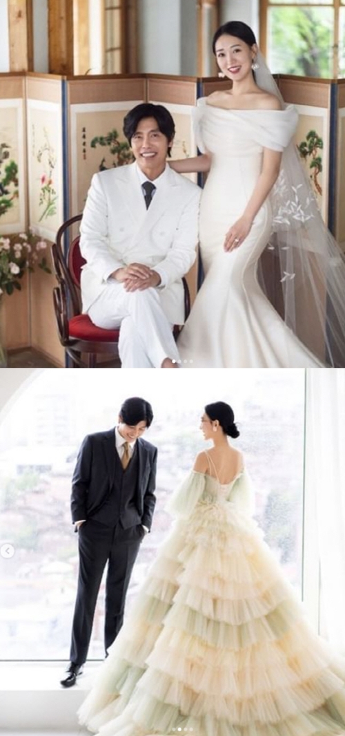 また別の写真では、婚約者はより華やかなドレスを着用している。イエローとグリーンが特徴的なドレス姿の花嫁のそばで、黒いスーツを着たチェ・ソングクは照れくさそうに下を向いて笑っている。