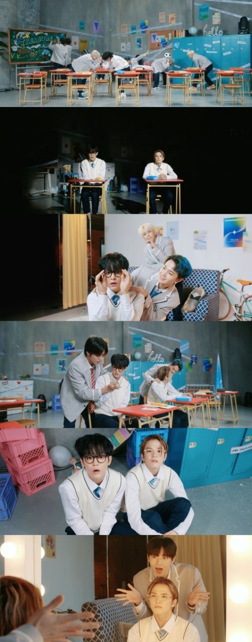 これまでの躍動的な振り付けとは違い、机に一列に座って腕を揺さぶるTREASUREの姿は、ファンを笑顔にさせる。