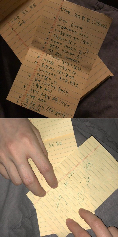 写真の中には、「アン・ジェヒョンの注意事項」と書かれたメモが写っている。
