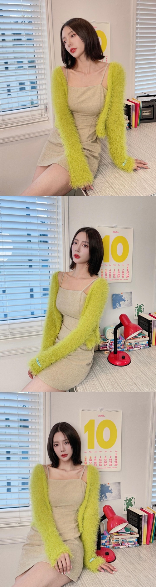 10月20日、クララは自身のインスタグラムを更新。ベージュのキャミソールにイエローグリーンのカーディガンを合わせた秋コーデを披露した。