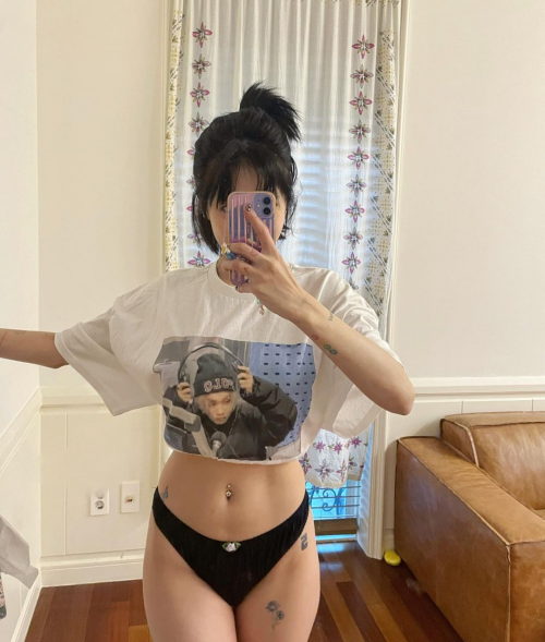 【写真】本番ステージで“熱々キス”のヒョナ、クロップド丈Tシャツからのぞく“体中のタトゥー”に称賛