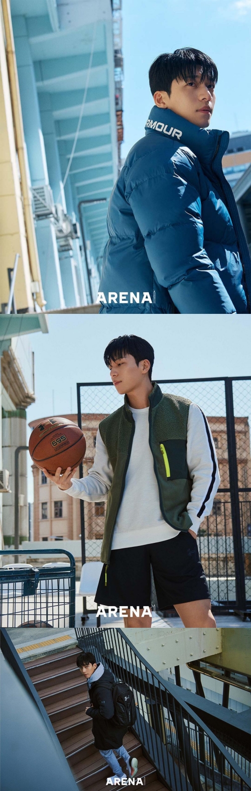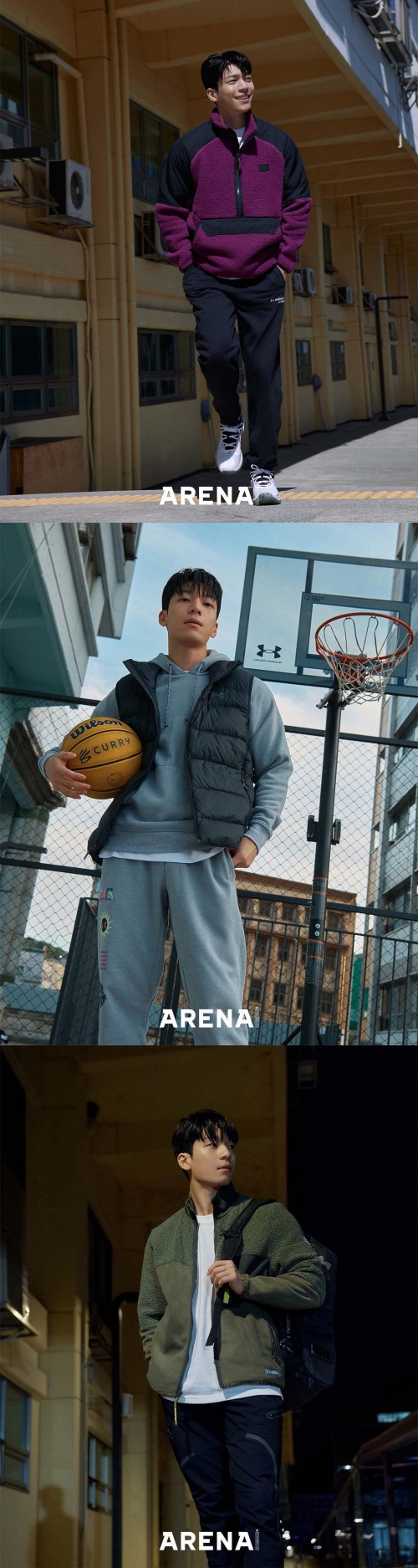 今回のコレクションでは、「冬にトレーニングへ向かう道」をコンセプトに、さまざまなウィンターコーデを披露するウィ・ハジュンの姿が存分に盛り込まれている。