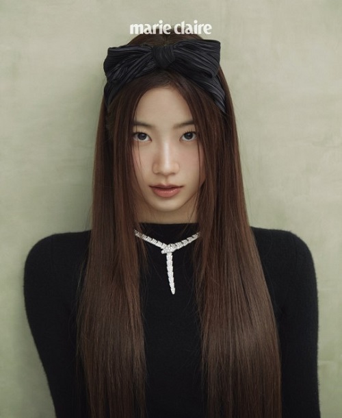 LE SSERAFIMの注目株となったカズハの写真とインタビューは、『marie claire』11月号や公式ウェブサイトで確認することができる。