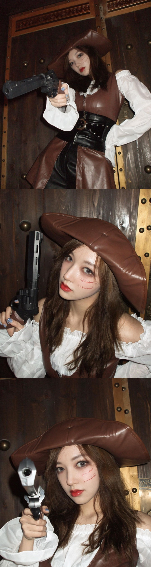 公開された写真には、ハロウィンデーを迎えて海賊に仮装したソンソの姿が。ハロウィンらしいメイクを施したソンソは、カウボーイハットに銃を構えてポーズをキメている。