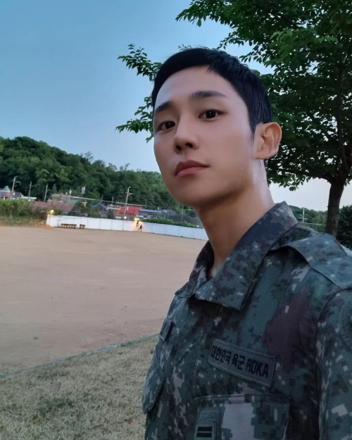 公開された写真には『D.P.』で主人公アン・ジュノ一等兵に扮したチョン・ヘインの姿が写っている。端正な顔立ちと軍服という破壊力強めな姿でファンを魅了した。