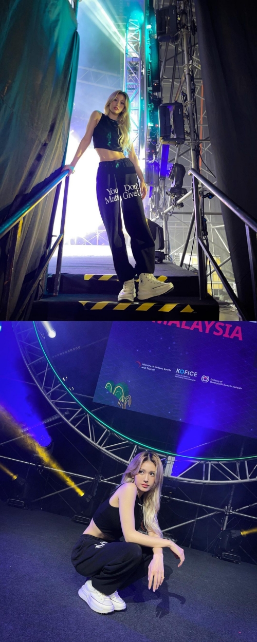 ステージからはライトの光が漏れており、まるでチョン・ソミに後光が差しているような1枚となっている。