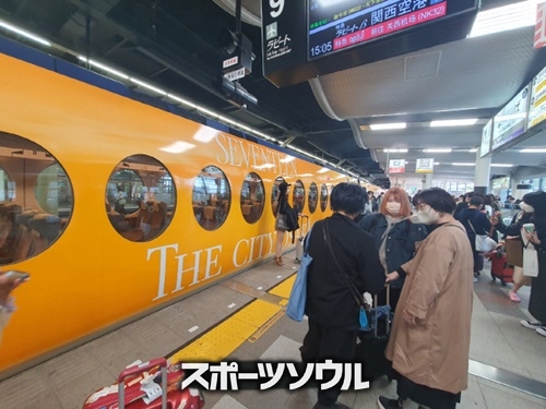 まずSEVENTEENイメージでラッピングされた南海電鉄の特急ラピートが、難波と関西国際空港間を走っている。京セラドーム公演と週末を迎え、関西空港から難波に移動する乗客たちは、SEVENTEENバージョンのラピートの前で記念撮影をするなど、熱い関心を示した。