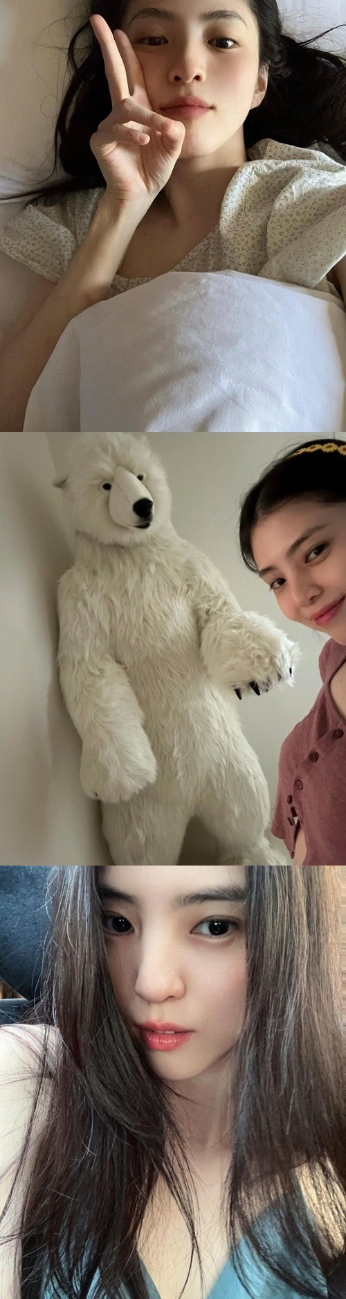 公開された写真でハン・ソヒは、ベッドに寝転んでパジャマ姿でピースサインをしたり、白熊の置物とツーショットを撮ったりしている。キャミソール姿でカメラを見つめるドアップ写真もあった。
