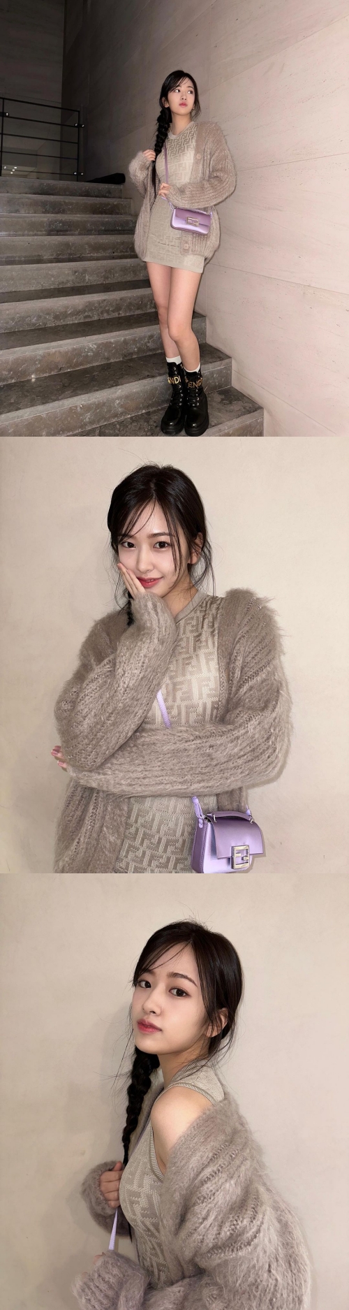 サイドでまとめられた三つ編みヘアも、ユジンの愛らしい雰囲気を倍増させた。