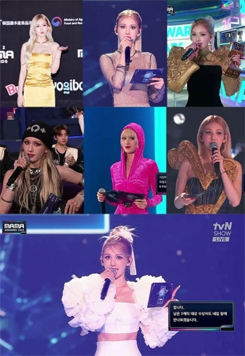 エネルギー溢れる舞台にパワフルなダンスで「MAMA」のスタートを知らせ、ビジュアルから進行まで何一つ欠点のないグローバルホストとしての顔を見せた。