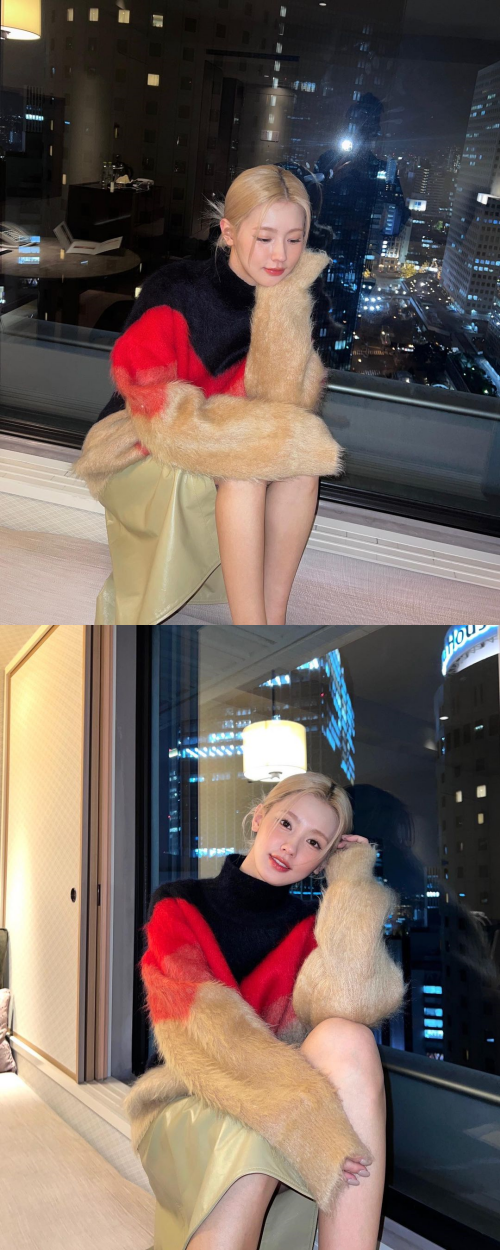 写真には、窓辺に座り夜景を眺めるミヨンの姿が。美しい夜景とぴったりのミヨンの美貌が輝いている。