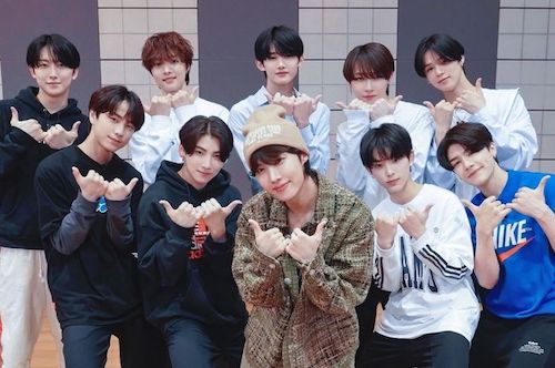 彼らは「昨日もJ-HOPE先輩の公演映像を見て寝たのに、来てくださってビックリした」「BTS先輩の『DNA』のステージを見てHYBEに入りたいと思った。こんなに会えるなんて、言葉が出ない」と感激した。