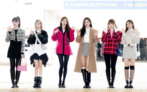 6人はミニスカートやワンピースで美脚を披露。それぞれの雰囲気にマッチしたウィンターコーデで見る者を魅了した。