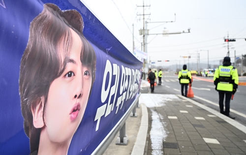 BTS・JINの入隊現場に多くのファンの姿、事務所は訪問控えてとお願いも…【現地写真】