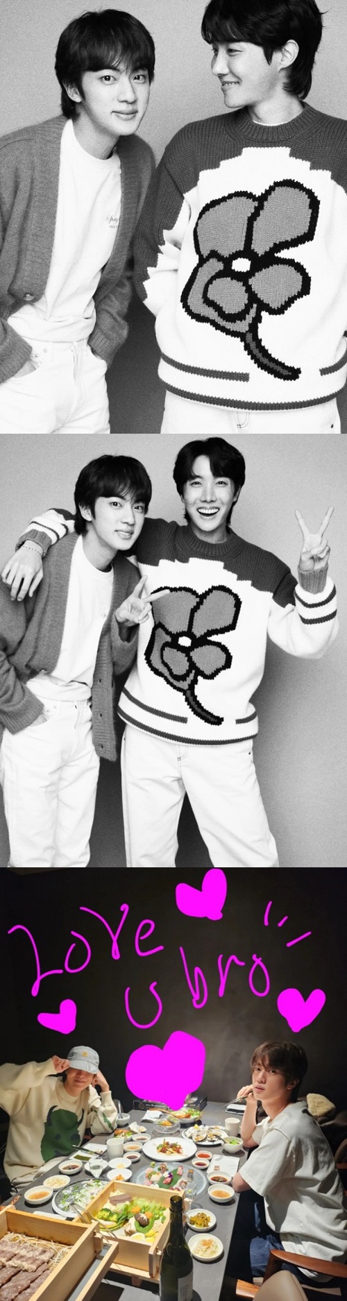 12月13日、J-HOPEは自身のSNSに「健康で幸せになりましょう、兄さん!愛しています!#ソクジン兄さんが準備してくれた#幸せな晩餐」というコメントと、数枚の写真を載せた。
