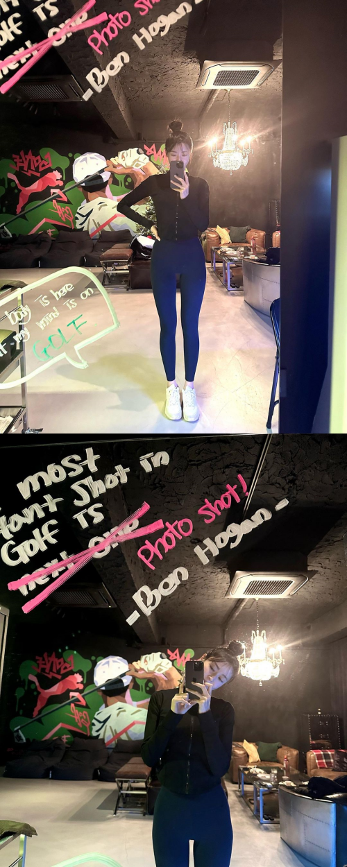 写真のクォン・ナラはレギンスを着用してスニーカーを履いているにもかかわらず、完璧な比率を誇っている。タイトな服装でも無駄な脂肪が一切なく、しっかりとしたボディラインを見せた。