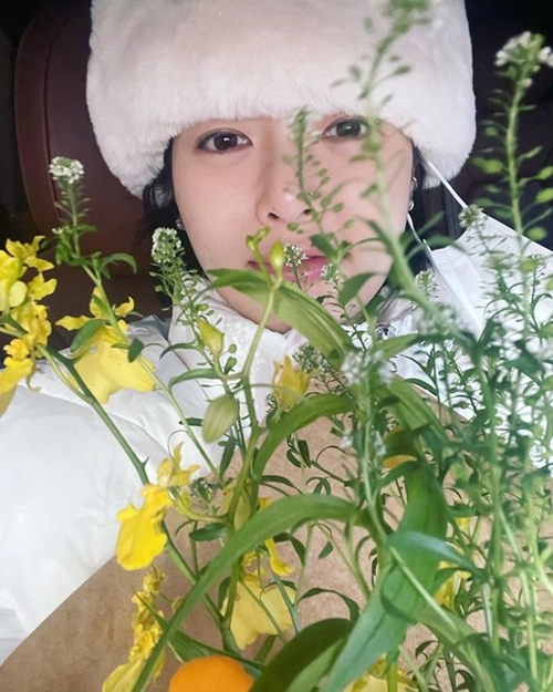 公開された写真のヒョナは、モコモコの帽子とダウンジャケットで完全武装している。透き通るような白い肌とホワイトコーデで、まるで白雪姫のようだ。
