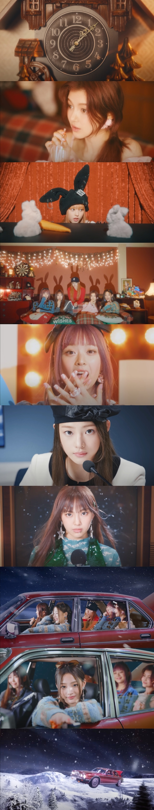 テレビ画面には、ニュースや料理番組など、それぞれのメンバーが出演するさまざまなコンテンツが映し出され、現実へとリンクしていく。幻想的なクリスマスムード一色の映像には、「Bunnies」(NewJeansのファンネーム)とともにクリスマスを楽しみたいNewJeansの姿が込められていた。