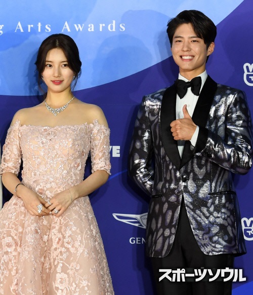 百想芸術大賞の共同MCを務めたペ・スジ(左)とパク・ボゴム