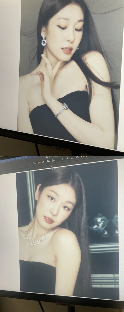 投稿を見ると、とあるブランドの広告撮影で撮られたキム・ヨナの写真がモニター越しに写っている。指をあごに当てた下目遣いや、少し首をかしげてカメラを見つめる表情が印象的だ。何より、モニター越しでも伝わる透き通るような美肌が見る者を魅了させている。