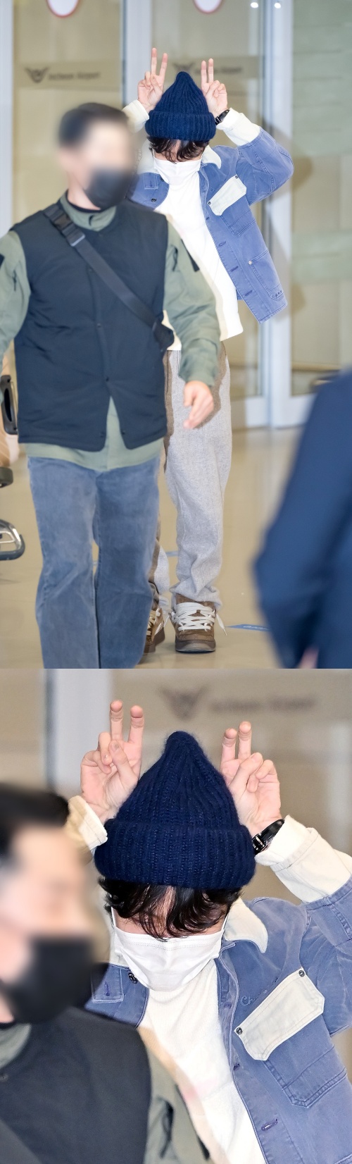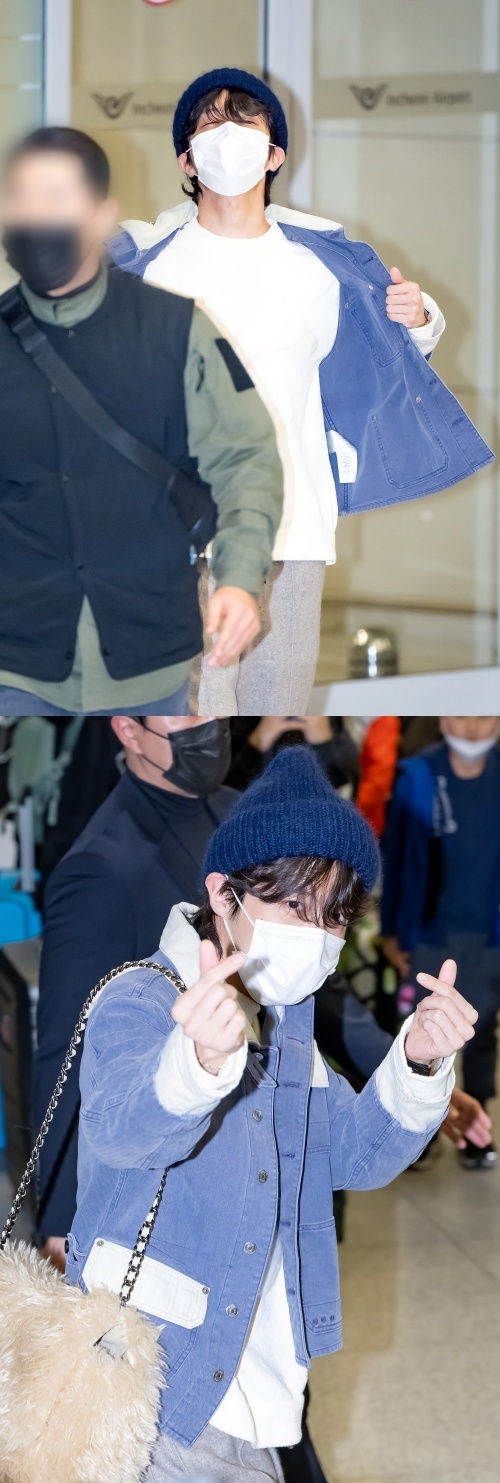 空港に来たファンや記者に手を振ったり指ハートをつくったり、ファンサービスを惜しまなかった。