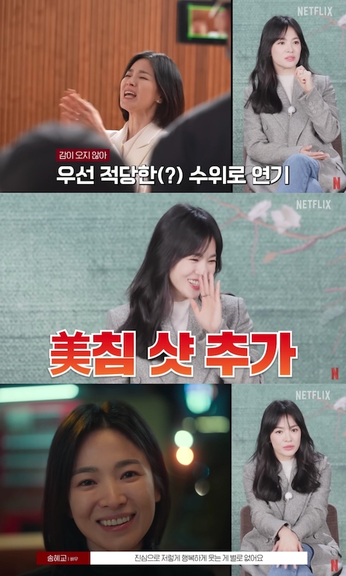 ソン・ヘギョは「きれいな身体ではなくひたすら痩せていて、見る人が心を痛めてほしい、そこにフォーカスを合わせるべきだと思った。コロナ禍で撮影が延期されるたびに、ダイエットのためのこんにゃくご飯を食べる日々が長引いた」と振り返り、笑いを誘った。