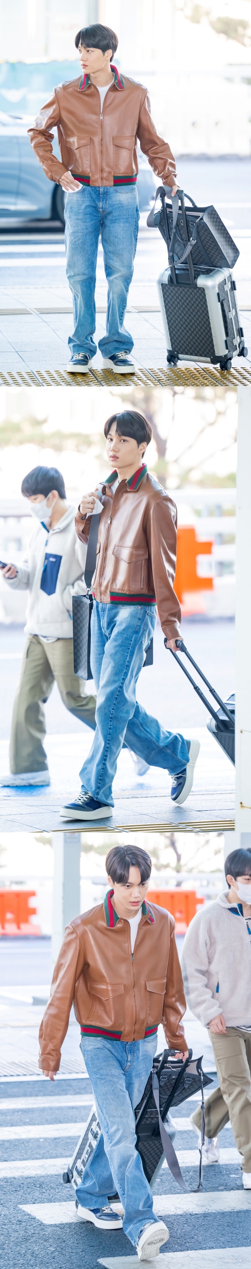 カイは1月12日午前、ミラノ・ファッションウィークに参加するために仁川(インチョン)国際空港を通じてイタリア・ミラノへと出国した。