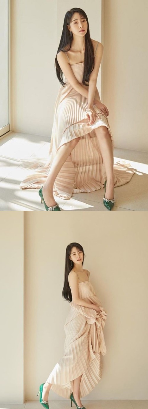 公開された写真でイム・ジヨンは、ベージュのワンピースを着ている。足元の緑のハイヒールがポイントとなっており、視線を奪う。美しいデコルテと長い黒髪が非常に清純な印象を与え、ドラマで演じた“いじめっ子”の雰囲気は皆無だ。